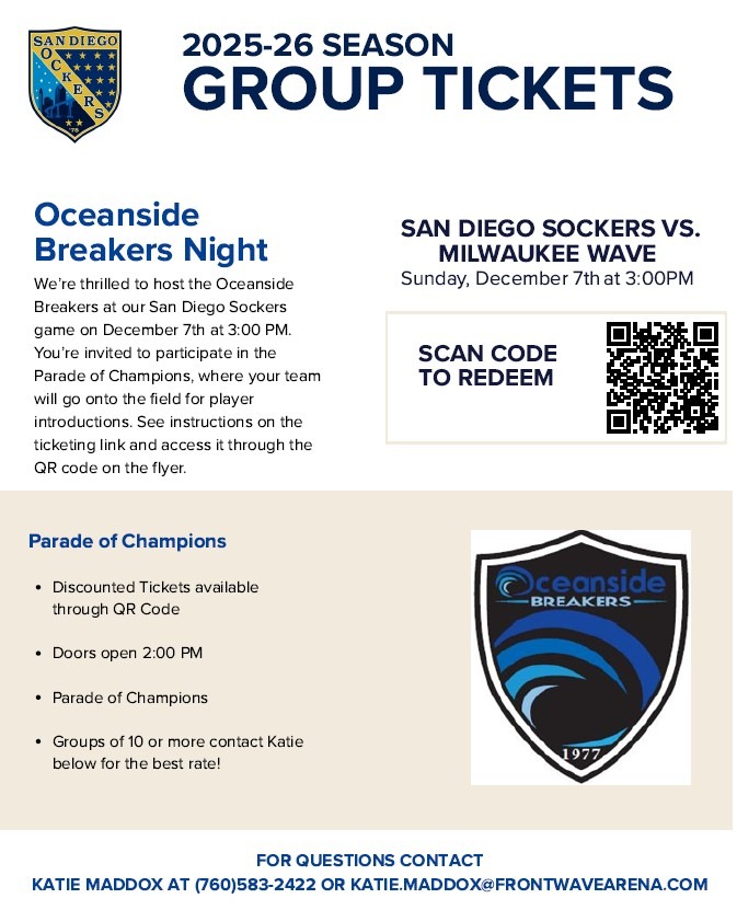 Please contact our Rec Director at CesarHernandez@oceansidebreakers.org for more information.